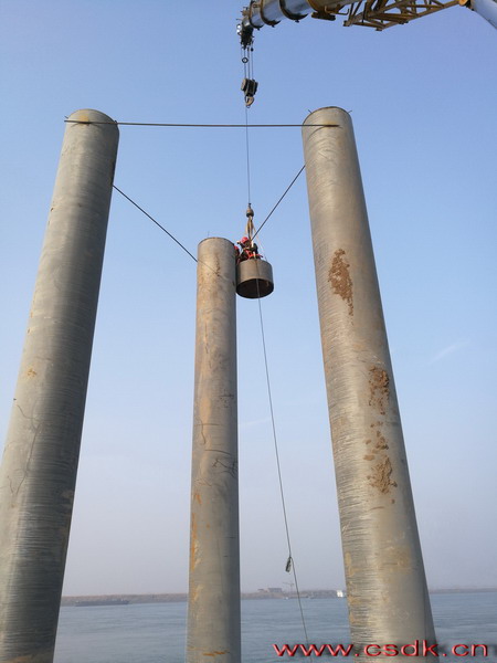 在預報最冷的冬天,湖南航務公司給了我們長沙大秦一個深情的擁抱,讓我們參與在岳陽長江邊安裝浮動船塢定位樁。
